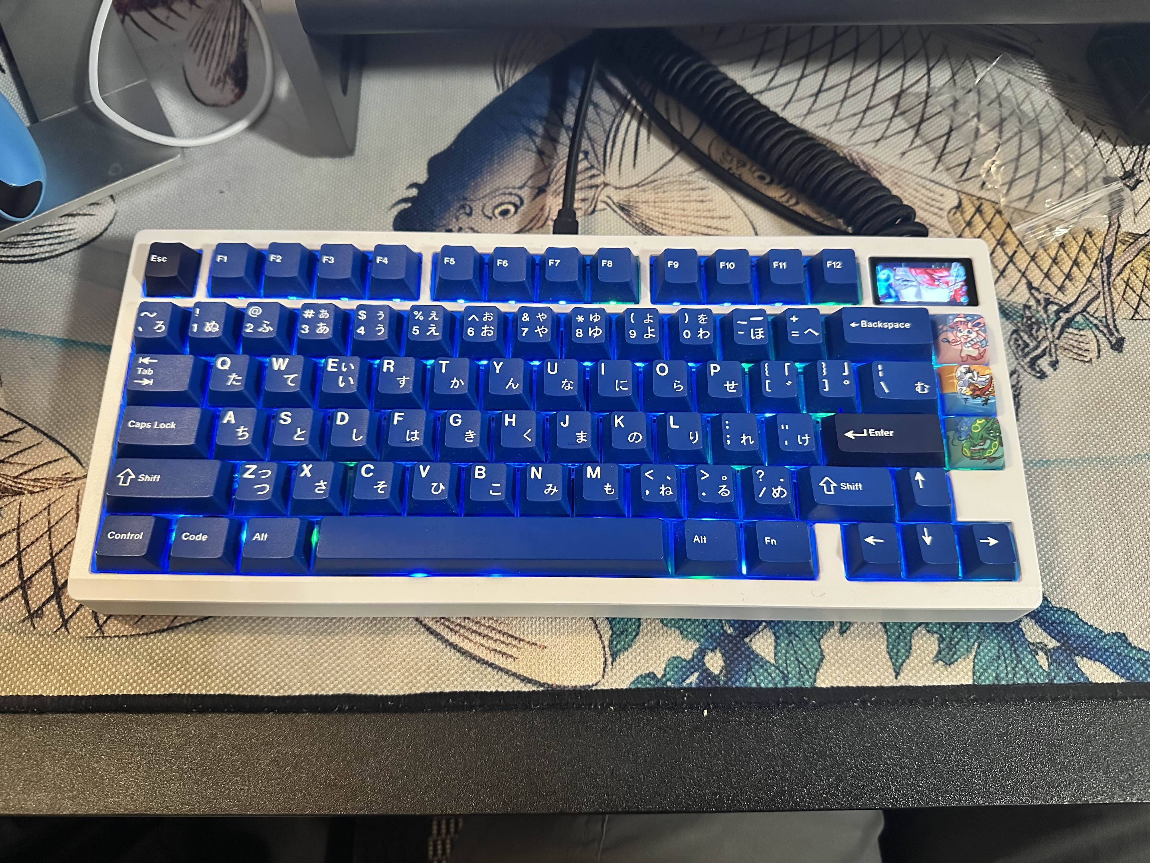 For this project, I assembled a Zoom75 barebones keyboard kit by carefully following the manual and troubleshooting the wiring to ensure full functionality. I also installed a small LCD screen inside the keyboard by replacing one of the original badges and added a battery to enable wireless operation. I took the time to properly lubricate the switches, which improved both the feel and sound of the keyboard, making it smoother and more enjoyable to type on. I also installed the keycaps I previously owned to achieve a keycap profile that I enjoy typing on. Finally, I combined all the components to complete the fully functional keyboard.